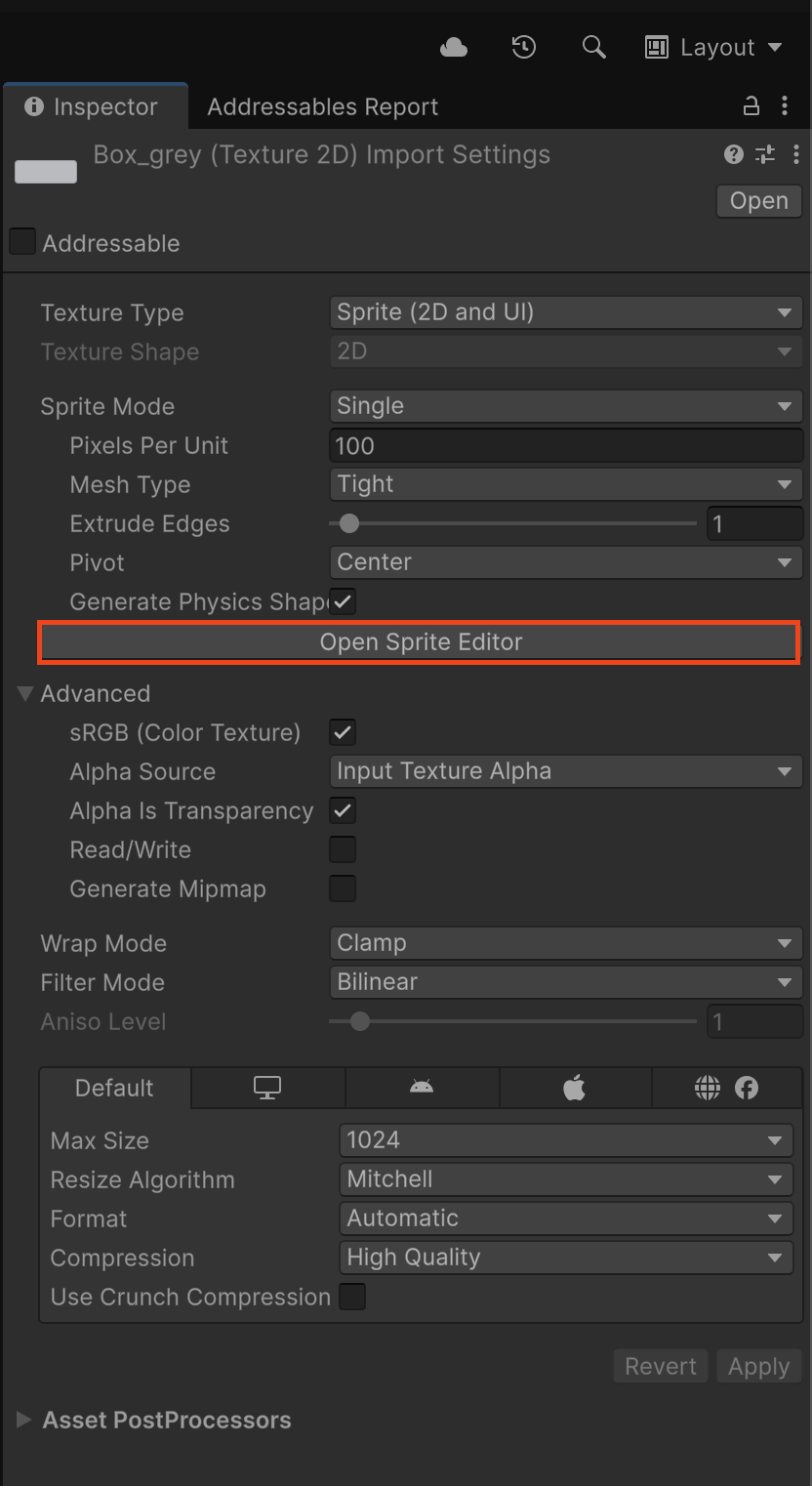 sprite editor를 이용하려고 했다.