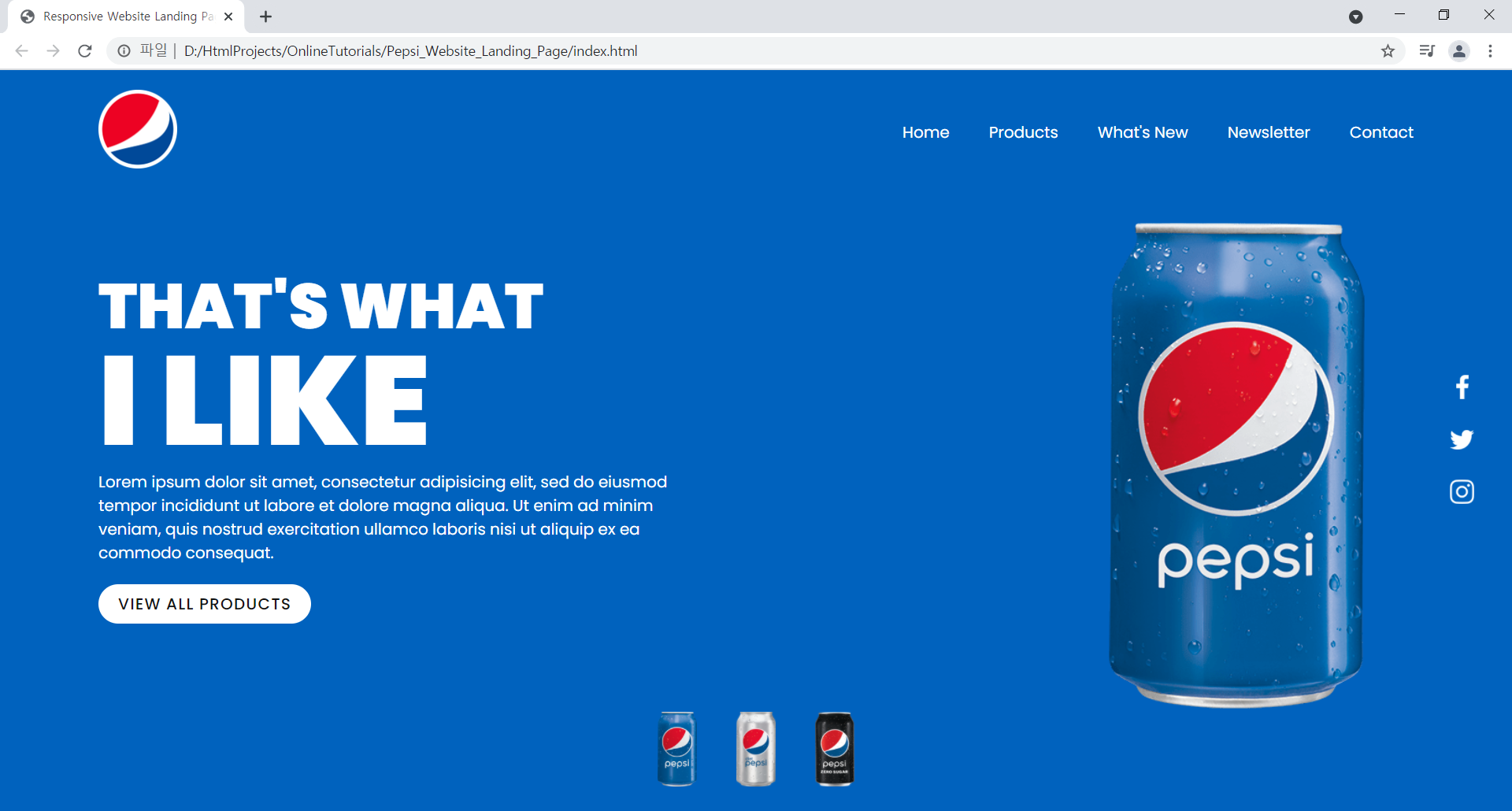 Pepsi Website Landing Page 예제 실습. Contribute to jiyeong1004/Pepsi_Website_Landing_Page development by creating an account on GitHub.