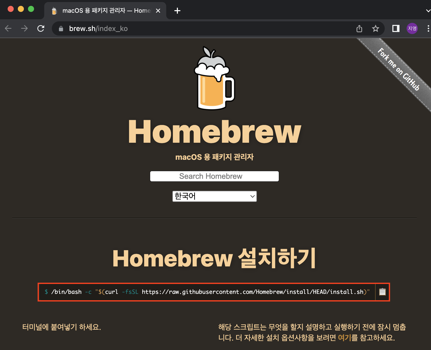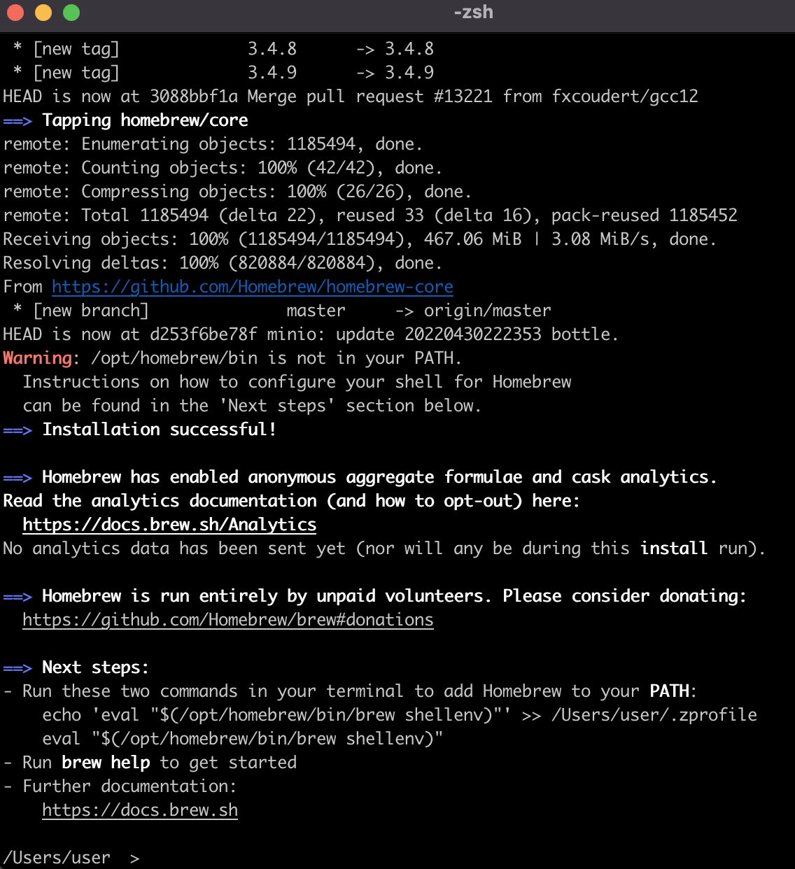이런식으로 나오면 “Homebrew” 설치가 완료된 것이다.