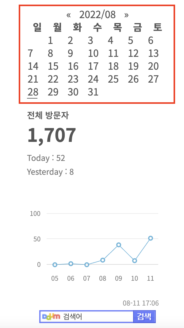 티스토리(Tistory) 스킨 중에는 달력 위젯이 제공이 되어있지 않은 스킨들도 있다.