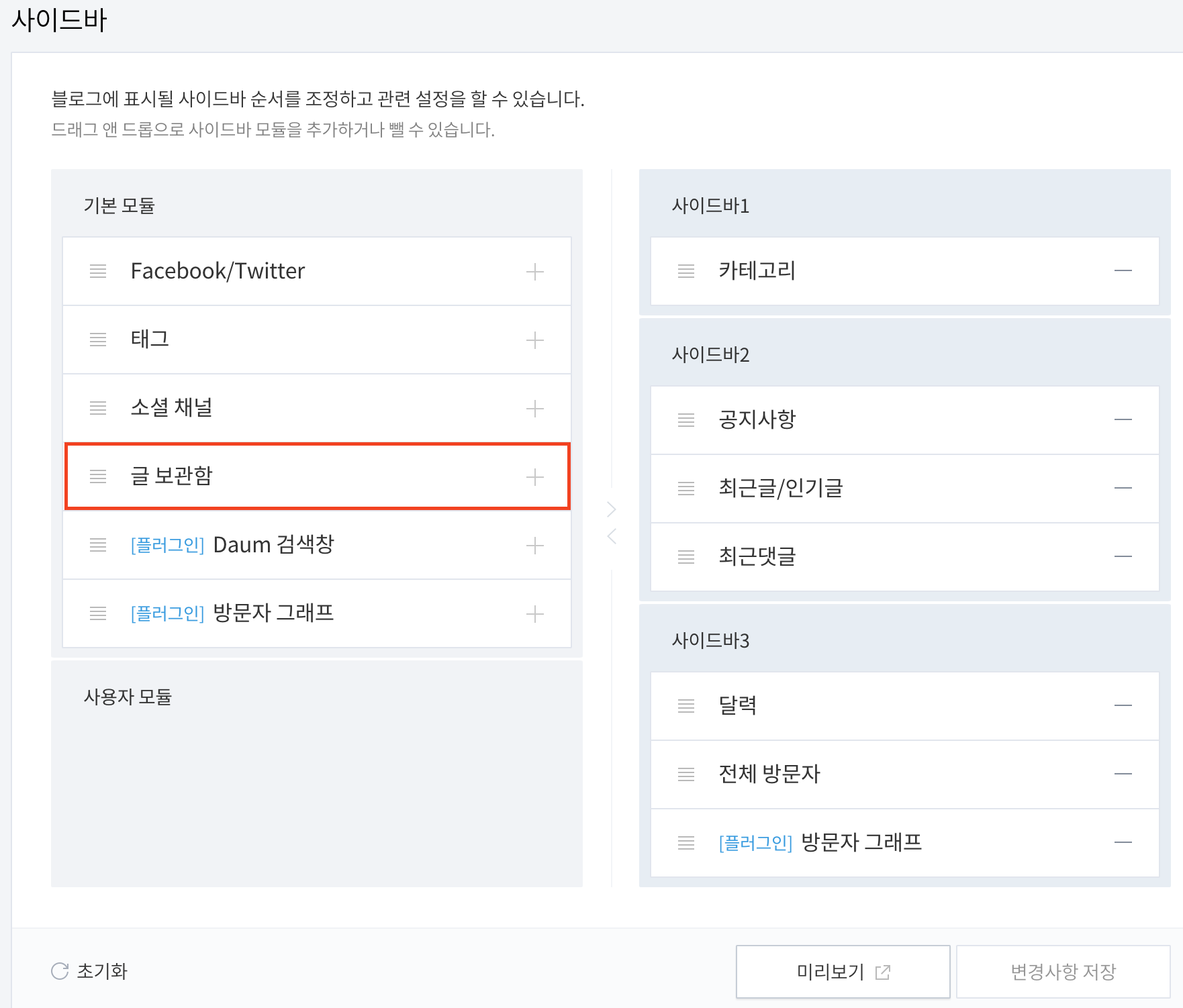 다음에는 기본 글 보관함을 꾸며볼 것이다.