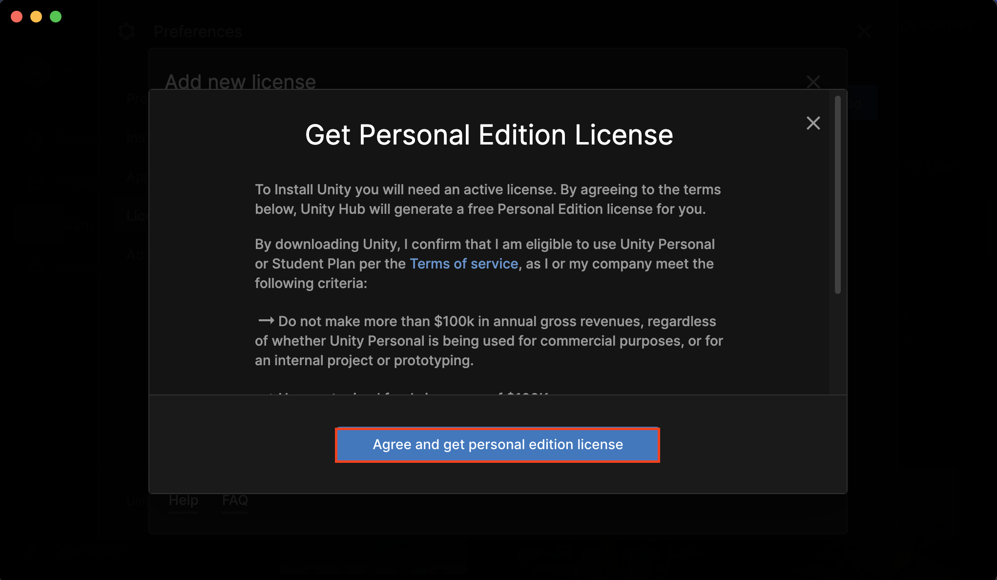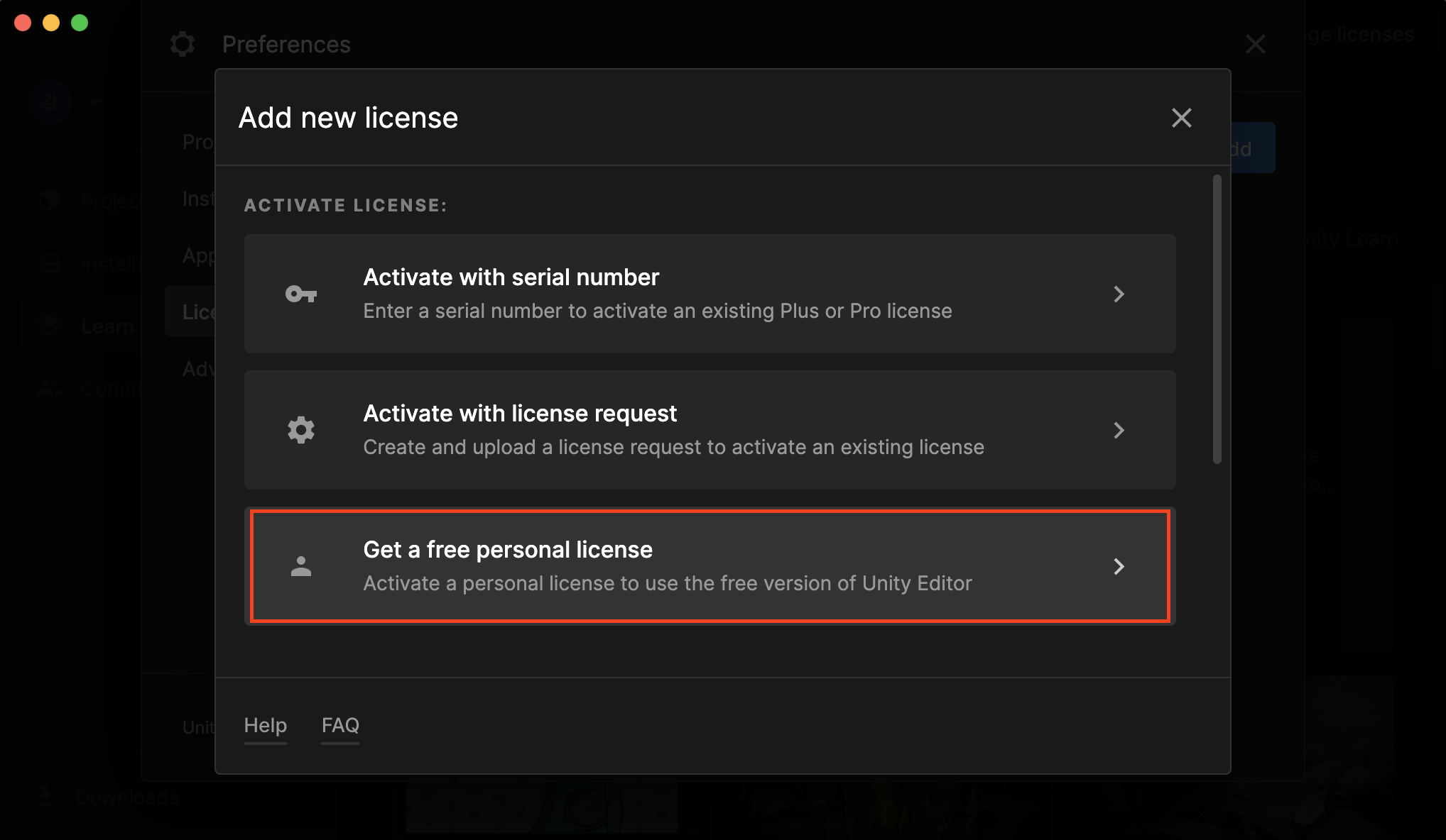 Unity를 오랜만에 들어와서 licenses를 다시 설정해야 한다.