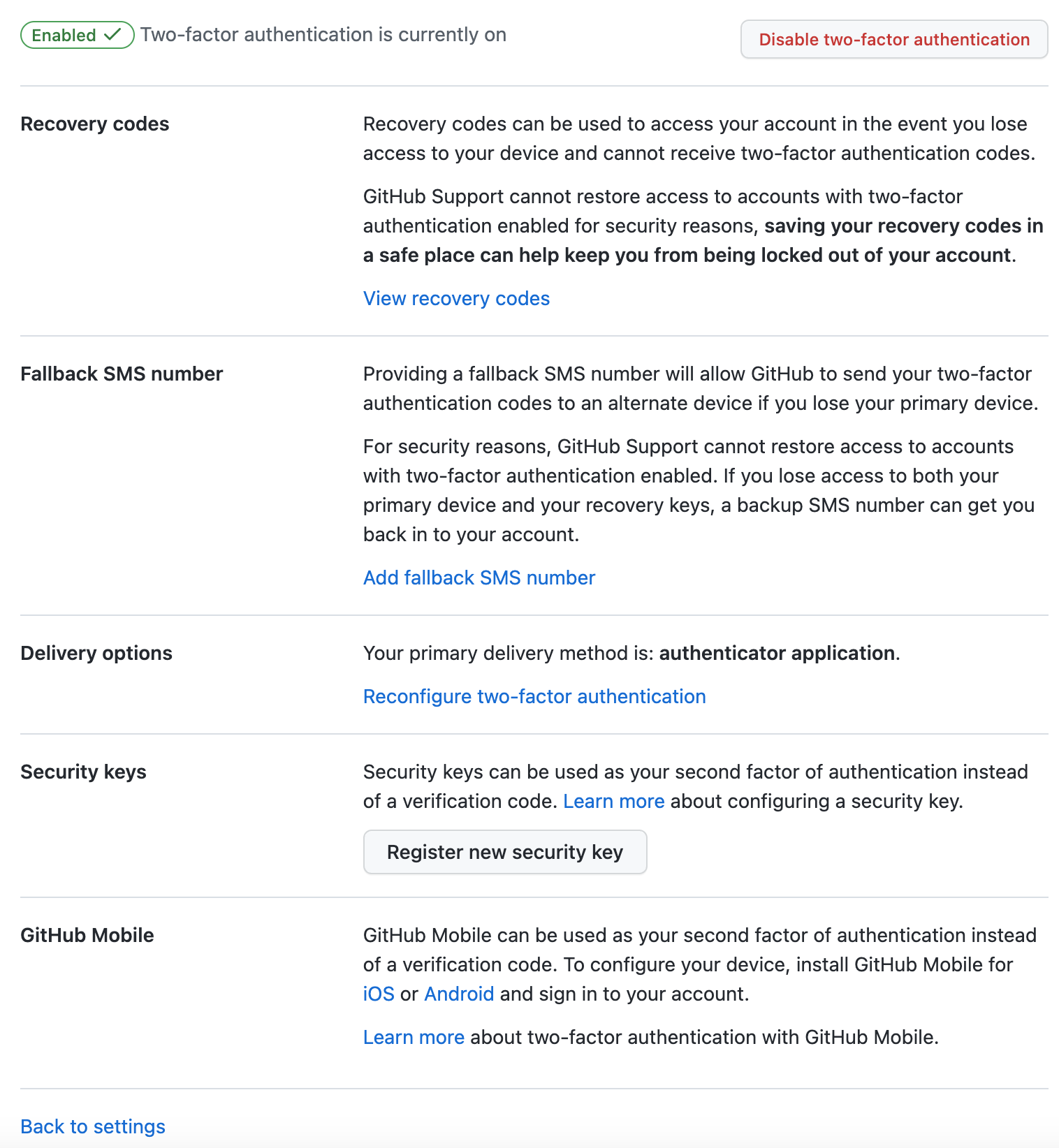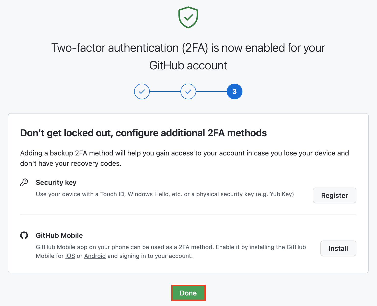 나는 (옵션 1) TouchID나 Github app 등으로 2단계 인증 방법 추가 를 선택했다.