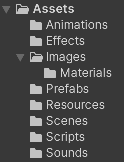 | Resources(대소문자, 복수형 필수) | Unity에서 지정한 특수 폴더로서 Resources에 있는 데이터는 빌드 시 무조건 포함됨. 하지만 일반적인 Data와는 다르게 메모리를 점유하지 않고, 필요시에만 Loading 되는 장점이 있다. |