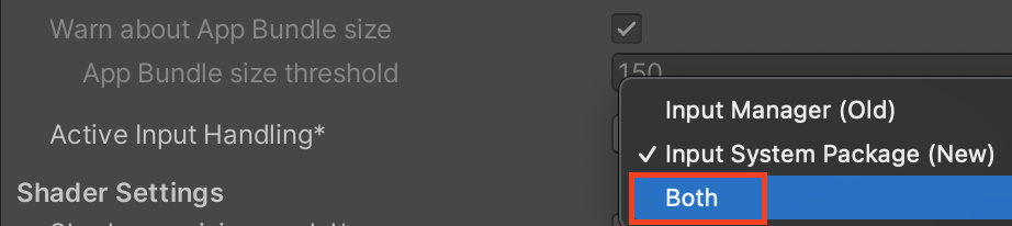 5. Active Input Handling*을 Input System Package (New) 에서 Both로 바꿔주자!