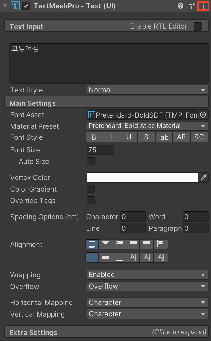 불러오려는 Text 컴포넌트에서 ... 을 눌러서
